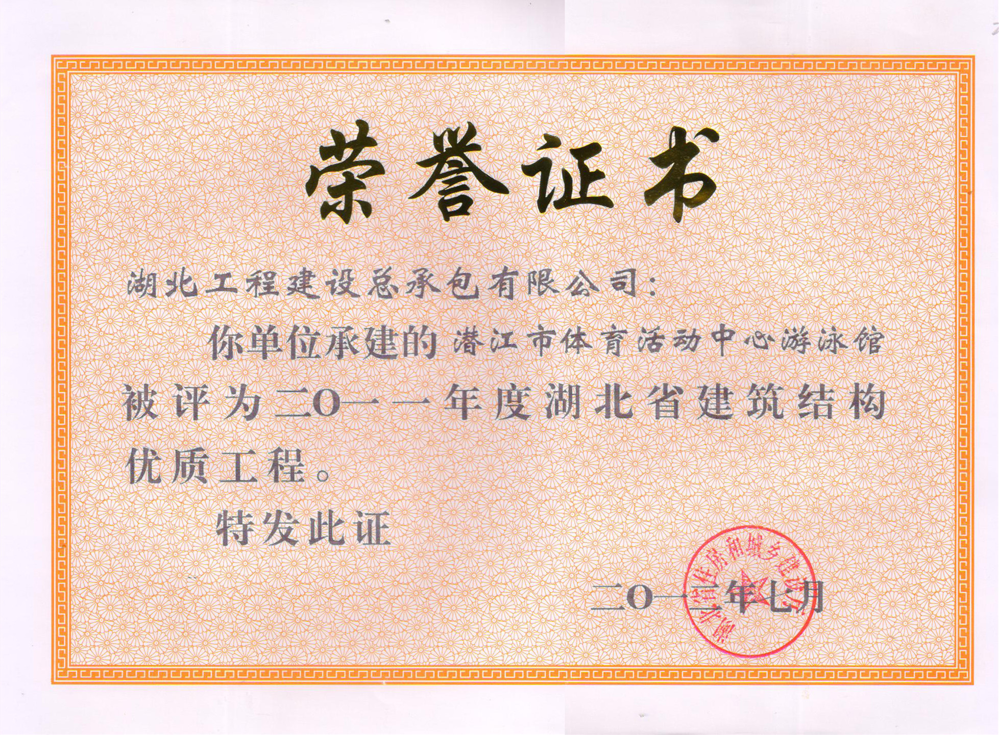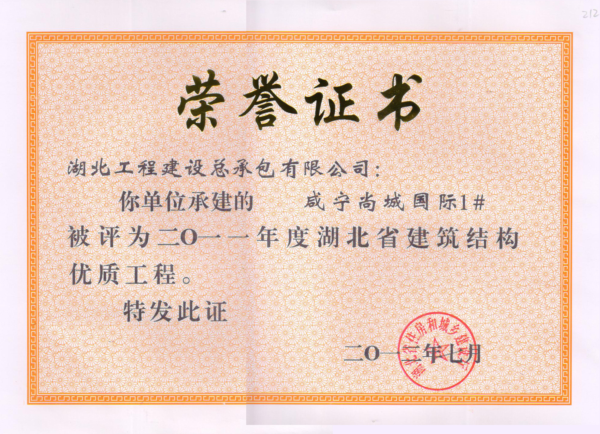 湖北省建筑结构优质工程